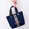 フロントには“木馬社”のサテンテープと、イタリア“バンチナストリ社”のグログランテープを重ね、さらにマーキスの紋章をモティーフにしたゴールドカラーの刺しゅうをあしらいアクセントに。
