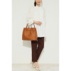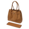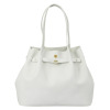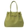 本体部分の革でハンドルを挟んで表現したタックと両サイドのベルトがポイントとなった、他では見かけないデザイン。