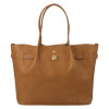 フロントにあしらった、当ブランドのロゴ入り金具もアクセント。