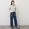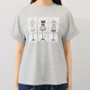 前身頃には、プリントをほどこした布帛パーツをあしらい、かわいらしいマネキン柄とモード感あふれるレイアウトで他にはない魅力を放ちます。
