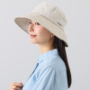 ストライプの生地が爽やかなデザイン。つば先にワイヤーを配しており、アレンジが楽しめます。