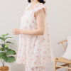 胸元にシャーリングを寄せることでかわいらしさをプラスしつつ、透け感を軽減して胸のラインをカバー。