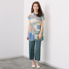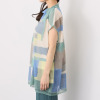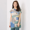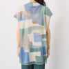 さまざまな形のブロック柄が織り成す中に、配色の効いた小さなブロックがアクセントとなり、目を惹くデザインに仕上がっています。