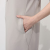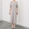 バンドカラーと深いスキッパー開きが、視線を中心かつ縦長に誘導。