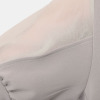 V開きの内側に共生地の胸当てを付けた、安心感のあるつくり。