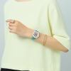 ユニークな白のストライプデザインが目を惹く、レザーウォッチです。