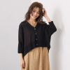 サイズレスでゆったりとしたシルエットながら、編地自体に落ち感があるため、すっきりとした印象を与えます。