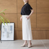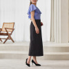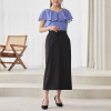 40代155cm普段9号で、スーパーブラックのMを購入しました。黒にも色々ありますが、スーパーブラックの名前通り真っ黒◎。生地もサラッとしていて、暑い時季に良いですね。丈もバックスリットも足がきれいに見えます。