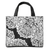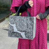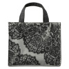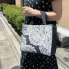 ほんのりとラメを織り込んだ生地に、レースの中でも繊細で気品のあるリバーレースをプリントしたトートバッグのご紹介です。