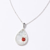 マザーオブパールをセットしたドロップ型のモティーフに、まるで幸せが舞い込むかのようにてんとう虫が止まっている情景を描いた、大人の遊び心あふれるペンダントトップです。