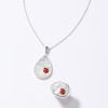 レッドカラーとマザーオブパールの対比が美しく、かわいらしさの中に洗練された雰囲気が漂い、コーディネイトのさりげないワンポイントにぴったり。