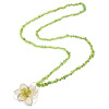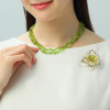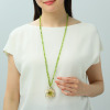 グリーンカラーの琥珀(こはく)を用いた、ペンダントブローチ&ロングネックレスです。