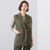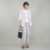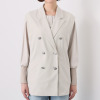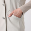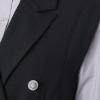 きちんと感のあるピークドラペルで視線を上側に持って行くスタイリッシュな襟がポイント。