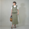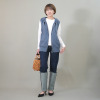 大きめのアームホールと切り替えデザインが、凝ったディテールを演出。