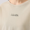 胸元には“Colorful life(彩りのある生活)”という、メッセージ性のある刺しゅうをさりげなくほどこし、小さめのロゴでトレンドを意識。