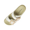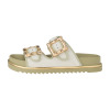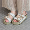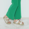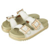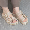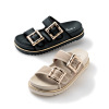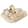 ゴールドカラーのバックルが夏の装いを華やかに演出。厚底デザインで足元にスタイリッシュさをプラス。