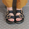 トレンドの厚底デザインに、大ぶりなゴールドカラーのバックルをあしらった、目を惹くデザイン。