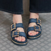 程良い太さのダブルベルトデザインで、足の露出を抑えた仕上がりです。