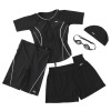 セパレーツ水着(トップス、ボトム)とキュロットパンツ、水着キャップ、水中ゴーグルの計5点をセットにしました。