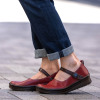 足を入れて振るだけでカチッと留まり、足の甲を上げて脱ごうとすれば簡単に外れる便利なマグネットストラップを採用しました。