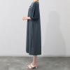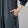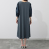 襟ぐりはシンプルなラウンドネックで、後ろに涙開きを配した着脱しやすいつくり。