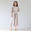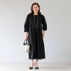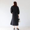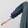 裾に向かって緩やかに広がるシルエットが素材の持つ陰影を上品に魅せ、レディーライクな雰囲気を醸し出します。