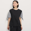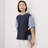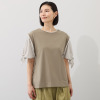 袖口のリボンがぱっと目を引く、異素材ドッキングのプルオーバーです。