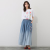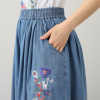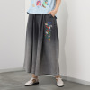 スカラー 花蝶ネコ刺しゅう グラデーション デニムパンツ