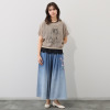 裾のグラデーションは、一枚一枚手作業でスプレープリントをほどこし、下から上へ自然なグラデーションを作り出しています。