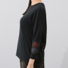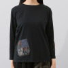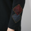 シンプルなデザインの中に光るパッチワークと刺し子。さりげない個性を装いに取り入れて。