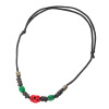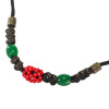 紬風の生地で編み込まれたひもに、グリーンカラーやレッドカラーの模造石を美しく配置。