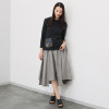 素材の適度なハリ感により、ユニークなヘムラインと相まって美しい落ち感を生み出します。