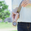 カラビナが付いており、自立させる、かばんにかける、ネックストラップをつけるなど、使い方自在。