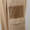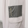 左側にはツヤ感のあるツイル素材を用いた異なる形状のポケットを配置し、利便性とデザイン性を高めました。