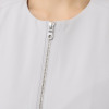襟ぐりはすっきりとしたラウンドネックで、前中心のファスナー開きで着脱もらくらく。
