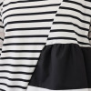 ギャザーフリルの裾を配色にすることで、全体の甘さを引き締める効果も。