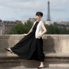 適度な落ち感がある麻調素材を使用した、夏におすすめのジレトップスです。