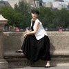 活動的な印象を与えてくれ、ちょうどいいちゃんとしている感があるので、仕事や習い事に着ています。肩を横からみたときの袖ぐりの立体的な感じがきれいです。前から見たシルエットは体のラインは拾わないものの、女性的な形になって素敵なお洋服です。