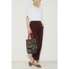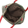 どちらかと言うとシンプルなデザインが好きな方ですが、このバッグ、なんだか一目惚れでした。迷彩の柄も派手すぎず、そこに赤いハンドルがなんともいいバランスです。