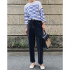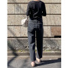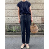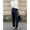 股上が深めなので、トップスの裾をインすると、すっきりコーデに。