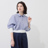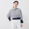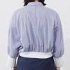 袖口・裾はネイビーよりブルーよりの色。本体は薄いグレーと思いきや白×ネイビーのピンストライプ。