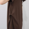 裏側両サイドのループにボタンを留めると、タックが寄ってドレープが美しいシルエットへと変化。