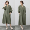 ふんわりとしたパフスリーブで大人かわいい雰囲気を演出し、裾に向かってのフレアラインが優雅さを加えます。