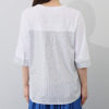 後ろ身頃は布帛との切替デザインを採用し、立体感のあるシルエットを実現。