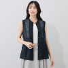里麻 トリアセテート混 デニム調プリント レース切替 スタンドカラーベスト