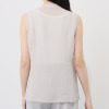 トリアセテート混の素材にデニム調プリントをのせた、上品で軽やかなベストです。
