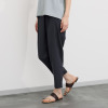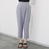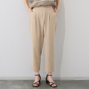 さらりとした肌触りが特徴的なコットンライクなポリエステル素材を使用したタックテーパードパンツ。