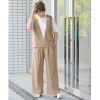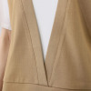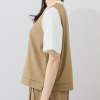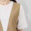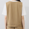 素材は白部分は綿でベスト部はポリエステル。白もほんのり光沢がある綿でカジュアルになりすぎず合格。ぺらぺらの薄い素材ではなくちょうどいい厚さです。顔のくすみもベスト風の配色で誤魔化せる気がします。
