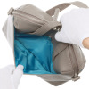 スマートフォンや財布、ポーチなどがゆったりと収まるサイズ感で、日常使いから旅行まで幅広いシーンで活躍。