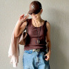 デコルテをきれいに見せる、シンプルながらも技ありのタンクトップです。